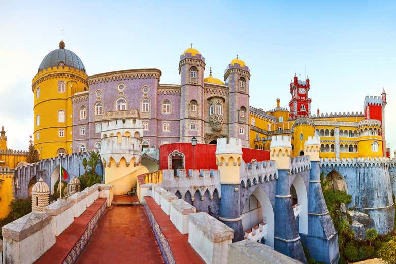 Ao finalizar o passeio pelo centro antigo, você terá o resto do dia livre em Sintra para passear, aproveitar sua deliciosa gastronomia e, claro, visitar seus principais monumentos no seu ritmo. O mais famoso de todos é, sem dúvida, o Palácio da Pena, uma antiga residência real portuguesa que se destaca pelas cores chamativas da sua fachada. Os tons amarelos, avermelhados e alaranjados conferem a este lugar uma estética onírica.